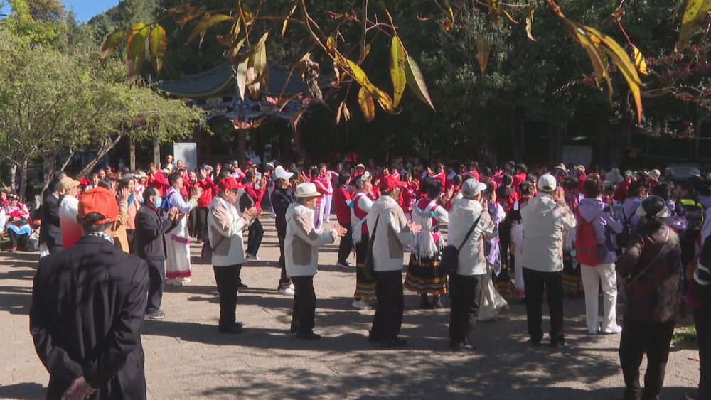 丽江市直老体协的会员们在黑龙潭公园打跳。(丽江融媒记者 和继鹏 摄)