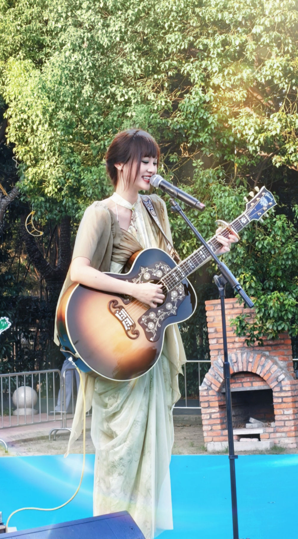 另一边,舞台经验丰富,身经百战的“琳大侠”吴佳琳则带来了反差鲜明的音乐故事。外表温婉的她曾是体育生,转型音乐后的她,曲风兼具清新旋律与深刻思考。她调侃自己的作品是“重口味小清新”,例如《胖子吃》以反讽手法批判“以瘦为美”的单一审美。丰富的演出经历让“琳大侠”吴佳琳见识过各式舞台:草莓音乐节的观众躺在草地上晒太阳,迷笛音乐节的乐迷在泥泞中摇树助兴。这些经历让她学会“面对不同气场调整状态”,而此次丽江之行,她更期待与观众在古城口的水车舞台相遇。“彩排时乐队老师专业又默契,我已经开始兴奋了。”她笑道:“舞台对我而言永远是学习和分享的地方。”