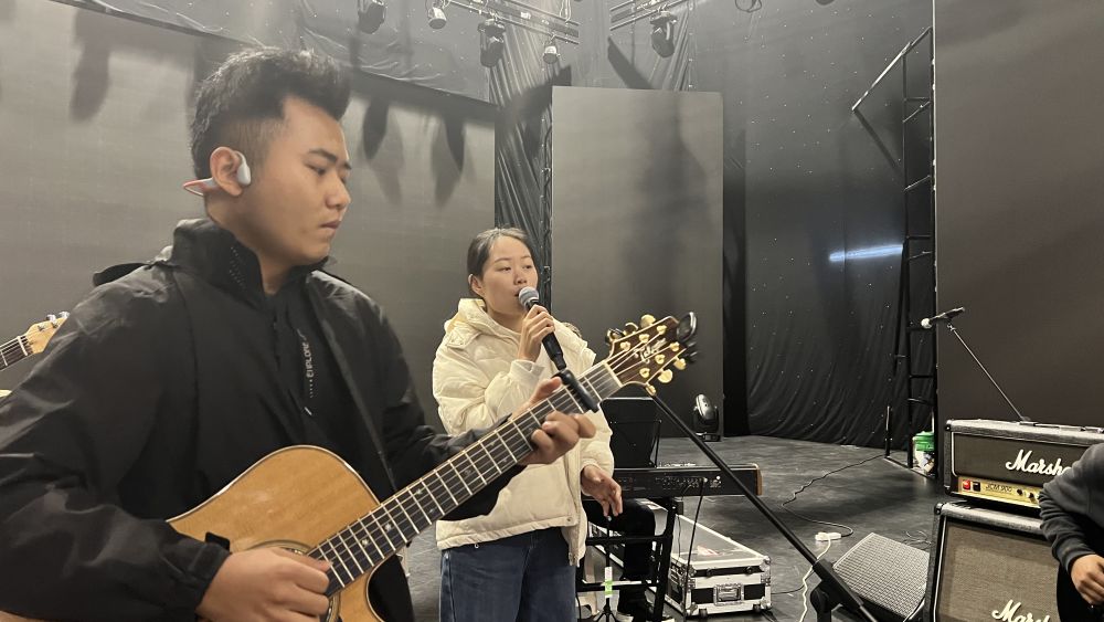11月11日,白造音乐队在丽江市融媒体中心演播大厅排练。(丽江融媒记者 许琦 摄)