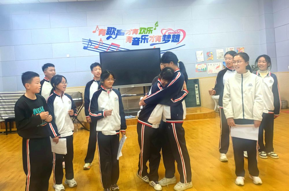“乐乐的故事可能就发生在我们身边。”参演学生道出了同龄人的心声。通过排练,孩子们深刻体会到,父母的高期望有时会变成让人喘不过气的“无形绳子”,而他们真正渴望的是努力后的一个拥抱,而非下一张试卷。第三次参加课本剧大赛的和春阳在剧中饰演备受关爱的月月,她的感悟尤为真切:“乐乐就像尚未绽放就被风雪压垮的小红花,我希望每个爸爸、妈妈都能静下来听听孩子的心声,让每一朵‘小红花’都能自由绽放。”