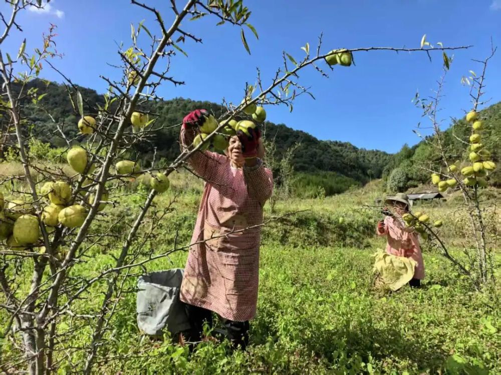 白花木瓜的“钱景”,不仅让种植户鼓了腰包,更带动了周边群众就近务工。每年10月至11月的采收季,曹双平的果园至少需要40名工人。“每天有70元工钱,干一个月能挣2000多元,大家都是乡里乡亲,闲的时候就过来帮忙,不耽误自家活计,还能多份收入,两全其美。”正在摘果的村民余金海接过话茬。