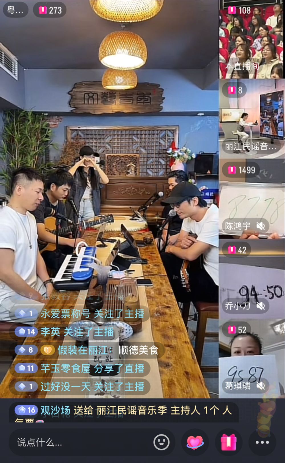 丽江民谣音乐季邀请平台头部达人“小白牙”团队进行系列直播。(截图)