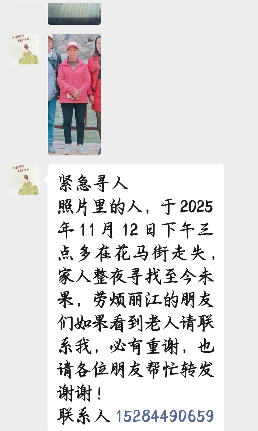 家属焦急万分,目前已经报警。恳请社会各界人士留意周边街道、商铺、公园等场所。若您发现老人踪迹,请立即联系家属。联系电话:15284490659