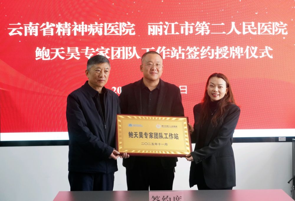 11月13日,云南省精神病医院鲍天昊专家团队工作站在丽江市第二人民医院签约授牌。双方将以此次合作为契机,搭建“专家引领、资源共享、协同发展”的优质平台,为滇西北地区精神卫生事业高质量发展注入强劲动能。