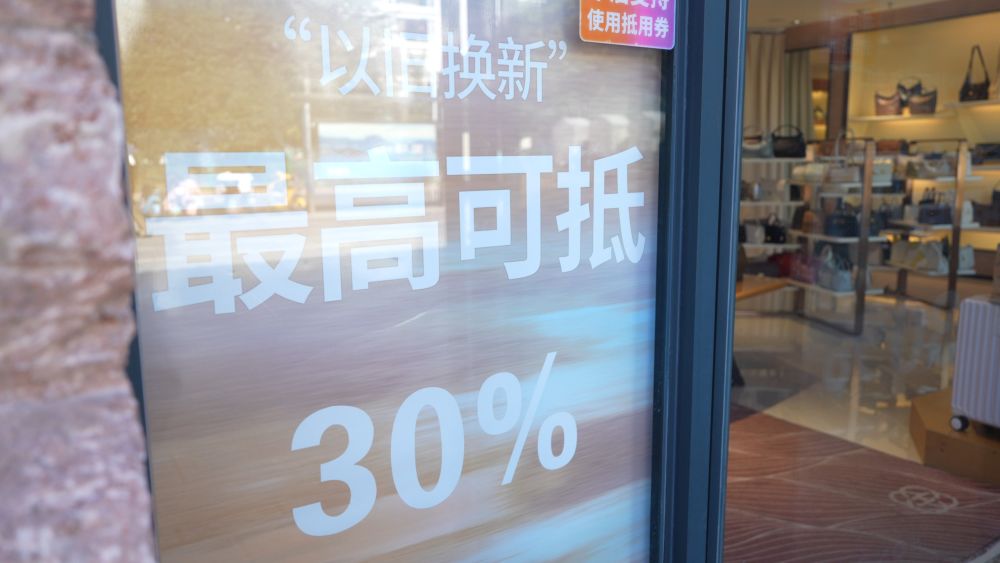 在HONGU红谷店内,顾客正参与以旧换新活动。(桑震宇 摄)