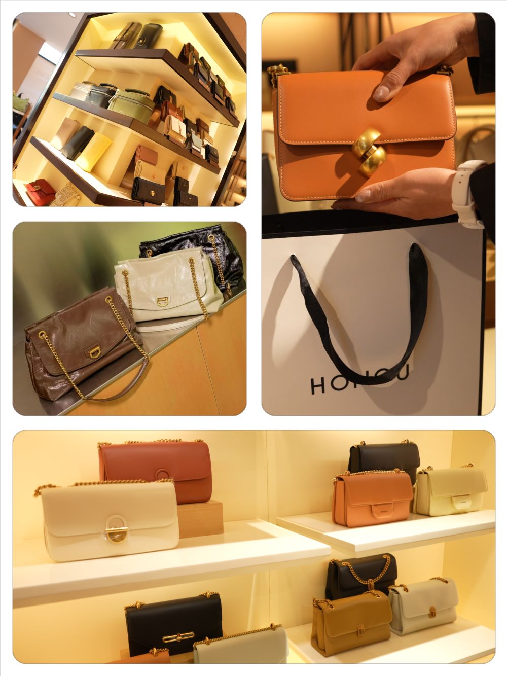 HONGU红谷店各款式包品。( 桑震宇 摄)