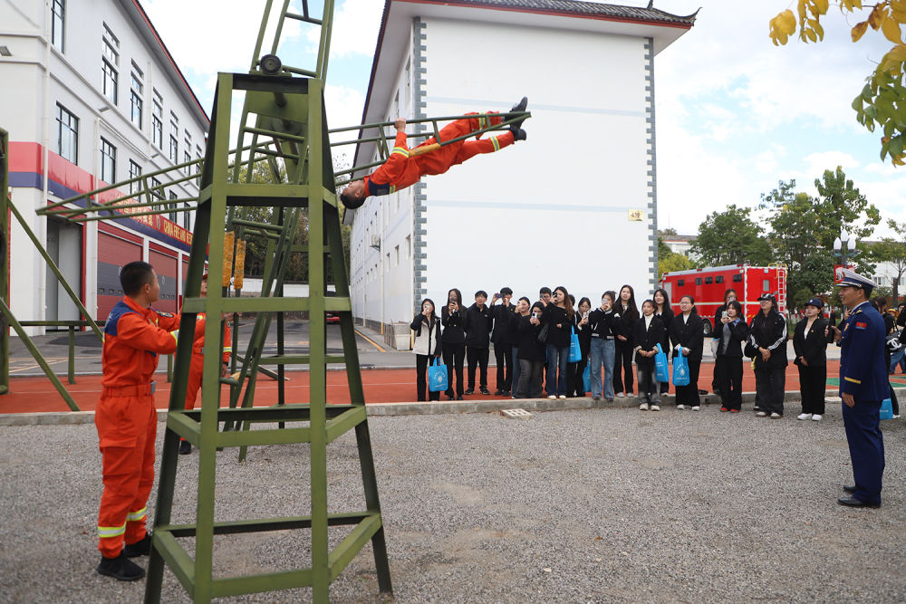 近日,丽江市古城区森林消防中队结合消防安全宣传月举办“营区开放日”活动。活动邀请丽江文化旅游学院的40余名学生走进营区,通过知识讲座、装备体验、技能观摩等方式,让学生们零距离感受消防员的日常训练与生活。