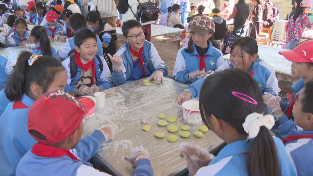 同学们正在体验手工制作鲜花饼。(丽江融媒记者 和继鹏 摄)