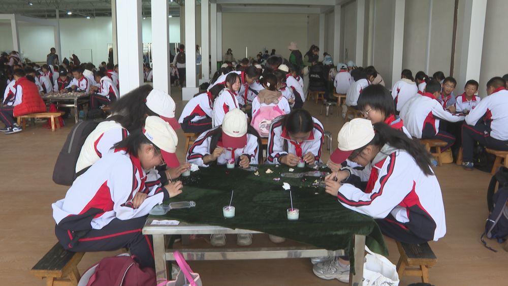 在丽江现代花卉产业园,同学们体验手工制作。(丽江融媒记者 和继鹏 摄)