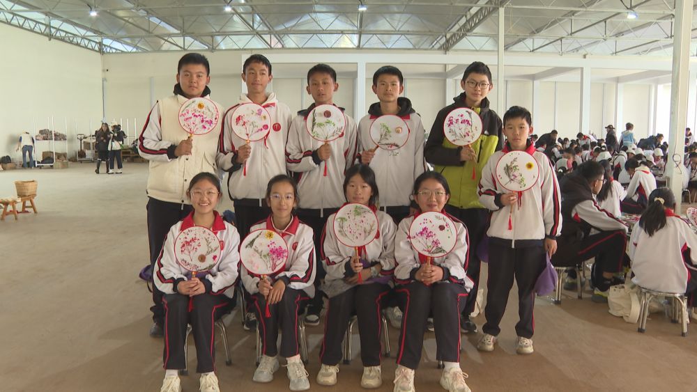 同学们展示做好的粘花团扇。(丽江融媒记者 和继鹏 摄)