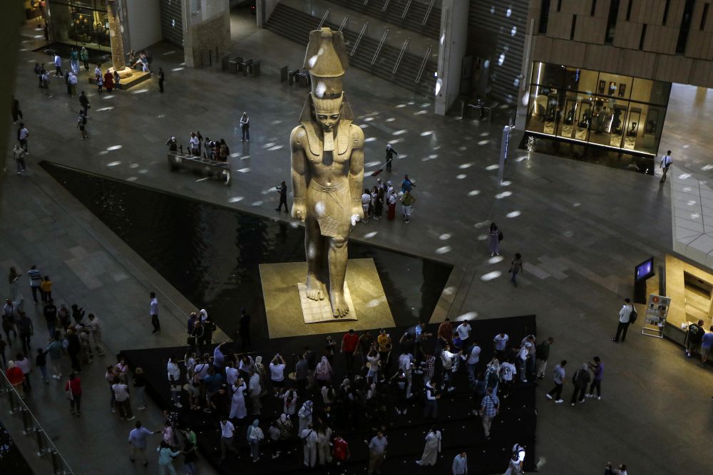 高达11米的拉美西斯二世巨像,拥有4500多年历史的胡夫太阳船,古埃及法老图坦卡蒙的黄金面具……大埃及博物馆4日正式开馆当天一早,中国游客王治国就赶到位于埃及首都开罗西南吉萨金字塔附近的博物馆参观。展厅内人头攒动,首日参观人数就达到约1.8万。“这是埃及的一张文化名片。”他说,“如今中埃之间不仅旅游、商贸往来热络,文化交流活动也是丰富多彩。”