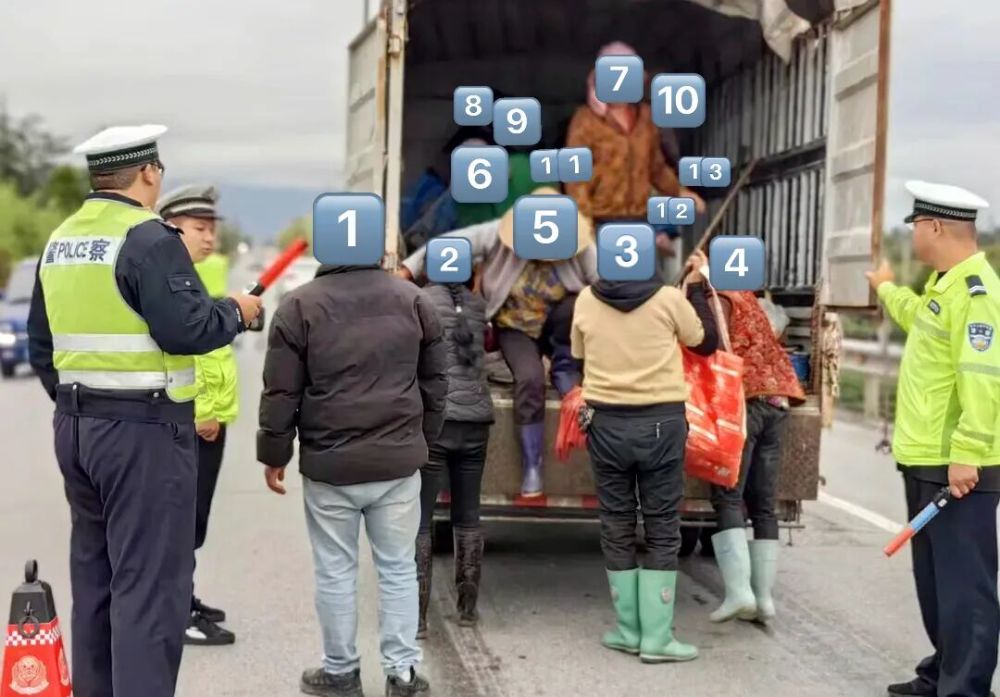 狭小的空间内密密麻麻挤坐着11名务工人员