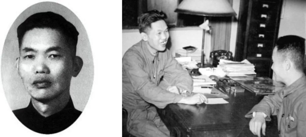青年恽逸群(左图) 恽逸群(左)在《解放日报》办公室(右图)