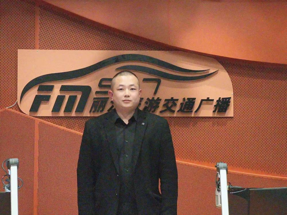 11月20日,丽江市快递行业古城区支部书记、丽江市快递行业工会联合会主席王云龙做客FM97.7丽江旅游交通广播直播间。(丽江融媒记者 杨超 摄)