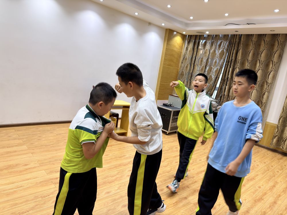 排练《法律阳光照校园》课本剧。(供图)