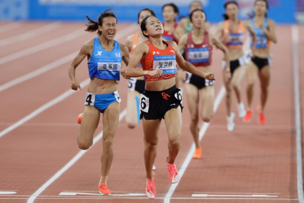 作为亚锦赛室内外双冠王,吴洪娇在本届全运会赛场备受瞩目。决赛中,8名顶尖选手同场竞技,赛道争夺异常激烈。吴洪娇起跑后保持稳健节奏,并未急于领跑,而是根据场上形势灵活调整跑位,始终紧跟第一集团。进入最后200米关键赛程,这位来自保山昌宁的姑娘突然加速,凭借标志性的强力冲刺甩开对手,在全场观众的欢呼声中强势突围,以清晰优势冲过终点线,将冠军收入囊中。冲线瞬间,吴洪娇高举双臂庆祝,脸上洋溢着胜利的喜悦,现场镜头定格下这一荣耀时刻。吴洪娇的夺冠成绩是2分05秒23,辽宁队李春辉以2分05秒75获得银牌,上届亚军饶欣雨以2分06秒75斩获铜牌。