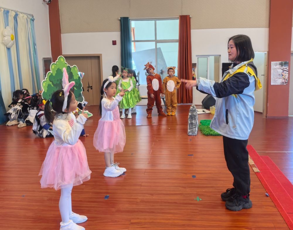 玉龙县小精灵礼仪幼儿园的小演员们正在排练童话剧《玉龙寻志》。(丽江融媒记者 侯玮 摄)