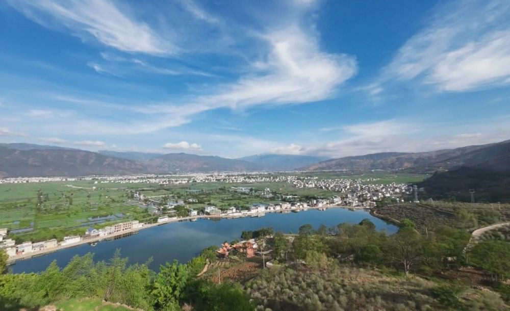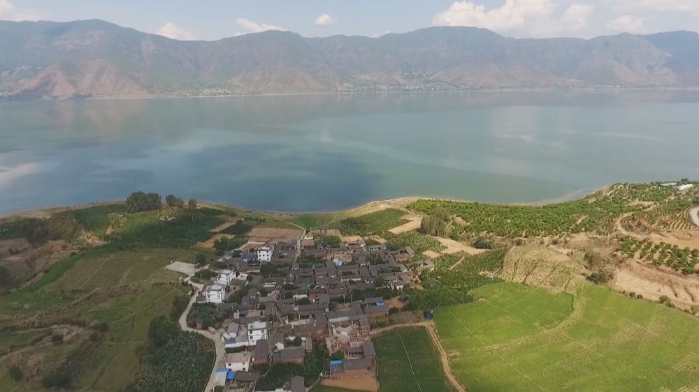 航拍永胜县程海镇。(永胜融媒 供图)