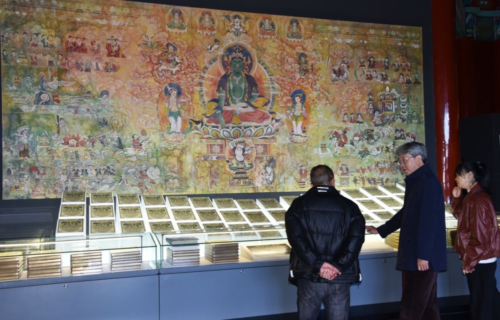 龚学敏(中)在东巴文化研究院详细了解东巴古籍申遗历程与东巴文的独特价值。(丽江融媒记者 段玉菊 摄)