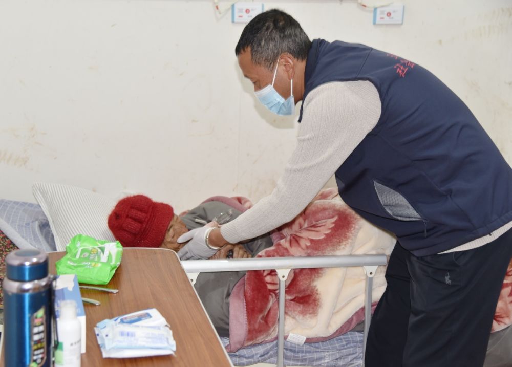 2016年9月,和文耀调入玉龙县社会福利中心,从此便把这里当成了家。面对部分失能、半失能老人自理能力薄弱的实际,他不叫苦不叫累,每日穿梭于老人房间,给老人穿衣喂饭、理发洗衣、洗澡擦身,和他们谈心交流,将照料工作做细做实,成为老人们口中的“自家人”。