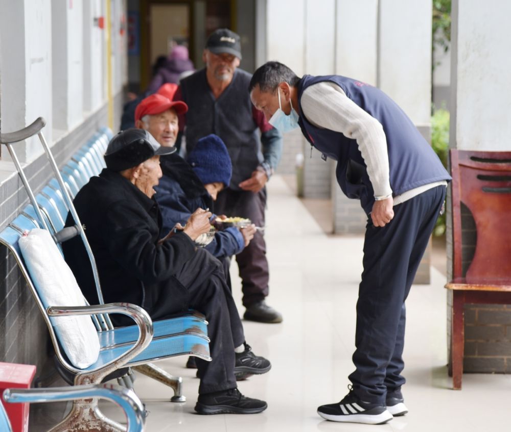 和文耀耐心询问老人饭菜是否可口满意。(丽江融媒记者 段玉菊 摄)