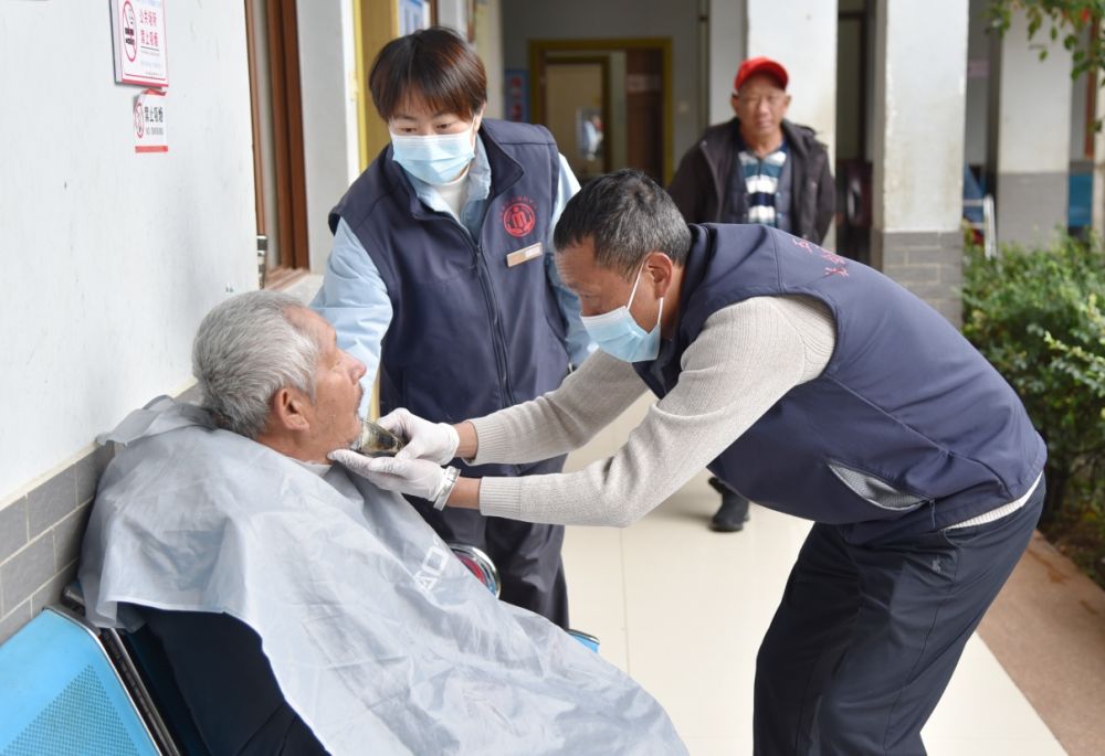 和文耀给老人理胡须。(丽江融媒记者 段玉菊 摄)