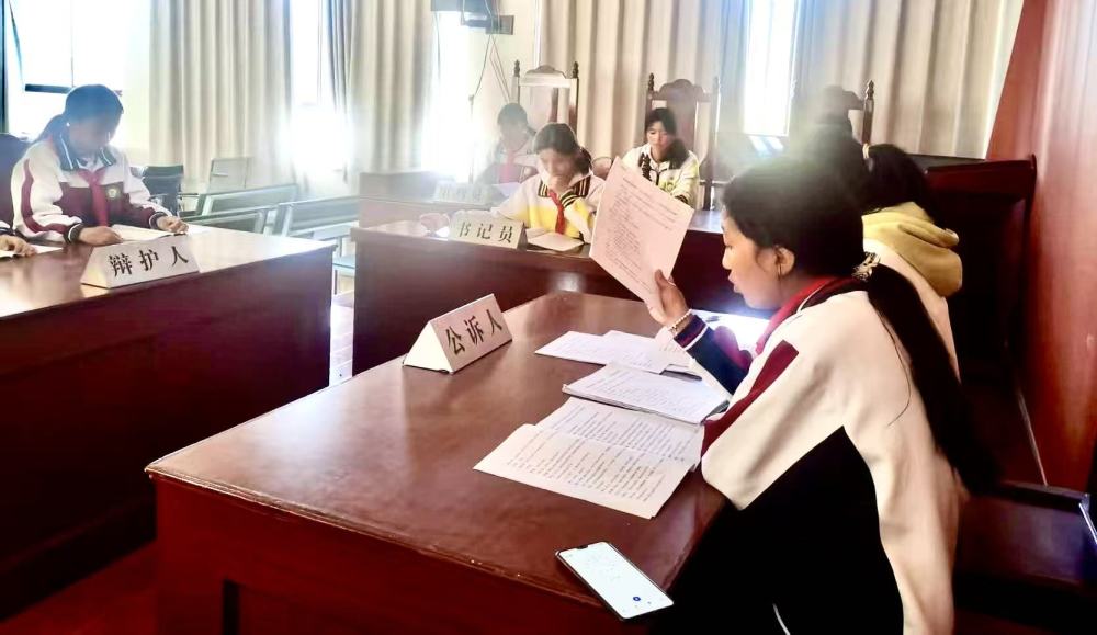 由丽江市司法局、丽江市教育体育局、丽江市融媒体中心联合主办的2025年丽江市第六届大中小学生课本剧展演暨第五届幼儿园经典童话剧大赛即将启幕。玉龙县九河乡中学精心编排的模拟法庭剧《冲动的惩罚——一堂生动的法治课》正在紧张排练中。