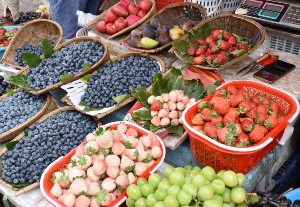 11月18日,记者走访丽江忠义市场及水果批发市场发现,本地草莓已上市。新鲜草莓被商贩们整齐摆放在摊位显眼位置,引得过往市民和游客纷纷驻足。
