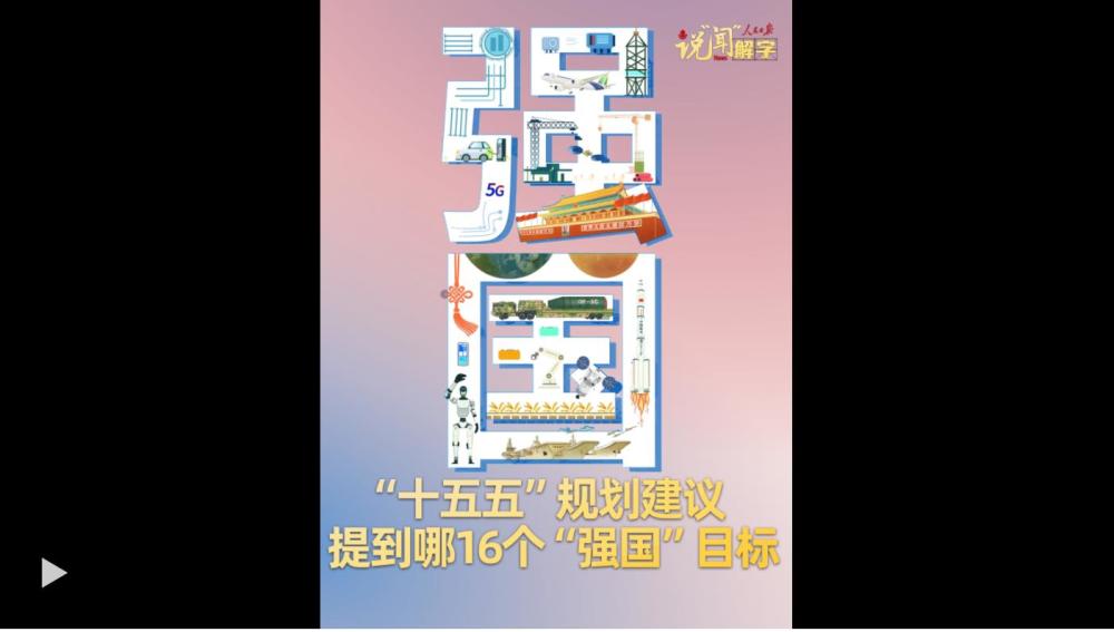 “十五五”规划建议中提到了16个“强国”目标。规划建议聚焦哪些实际问题?我们将在哪些地方发力?一支视频读懂。