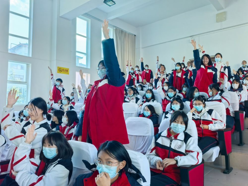 进入网络安全知识抢答环节,学生们踊跃举手。(丽江融媒记者 木雯娇 摄)