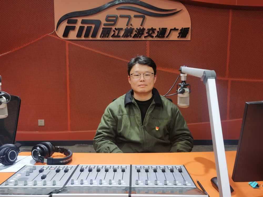 11月19日,古城区束河街道办事处副主任邱云做客丽江旅游交通广播直播间。(供图)