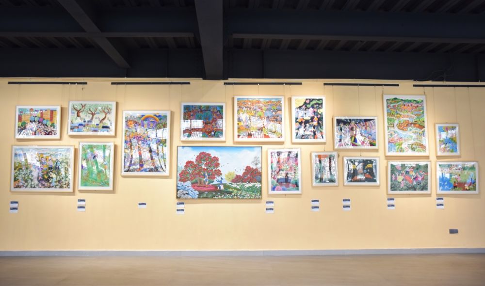 此次展览以“村庄里的美术馆”为核心主题,打破传统展馆边界,将玉湖村文化中心打造为充满乡土气息的艺术空间。展览汇聚了傣、哈尼、傈僳、彝、纳西等多个民族的50位优秀农民画家的作品,涵盖水粉、丙烯、版画等多种形式,以夸张的想象、饱满的色彩和质朴的笔触,生动定格了云南各地的生产劳作场景、民俗节日欢腾画面与乡村振兴新貌,尽显“艺术源于生活”的创作真谛。