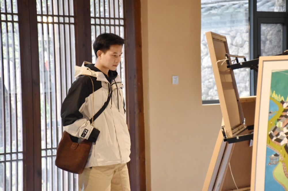游客在观看画展。(丽江融媒记者 杨四娟 摄)