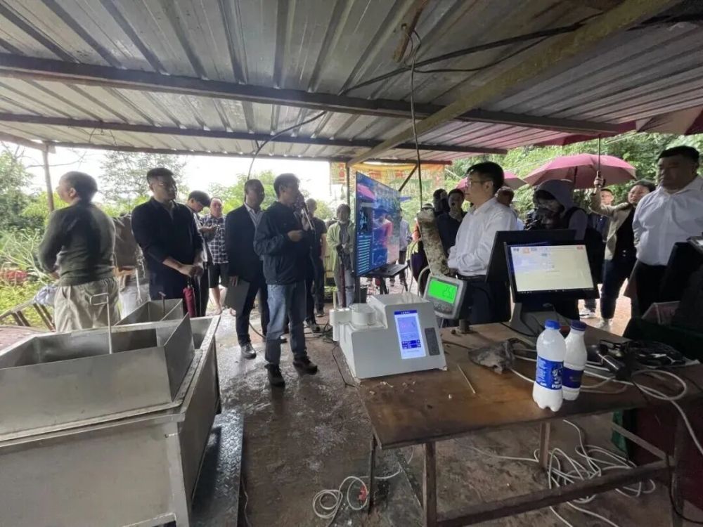 调研过程中,专家组一行先后深入了解了单轨运胶车的实操应用、勐腊县农垦集团自主研发的“胶易”收胶软件核心功能、胶园管理系统运行机制及浸没式微波技术应用场景。作为本次调研的核心亮点,“胶易”收胶软件与胶园管理系统凭借其在收胶流程优化、胶园精细化管理等方面的智能化设计,引发了调研人员的浓厚兴趣。大家不时驻足观摩系统操作演示,详细询问数据录入、流程管控、数据分析等关键环节,围绕信息化技术如何破解传统橡胶种植、采收、管理中的痛点难点展开深入交流。