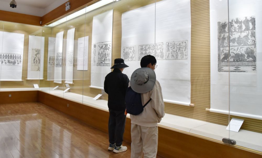 11月20日,游客在市博物院观看“汉画像石上的孔子——济宁汉碑汉画像石拓片展”。(丽江融媒记者 段玉菊 摄)