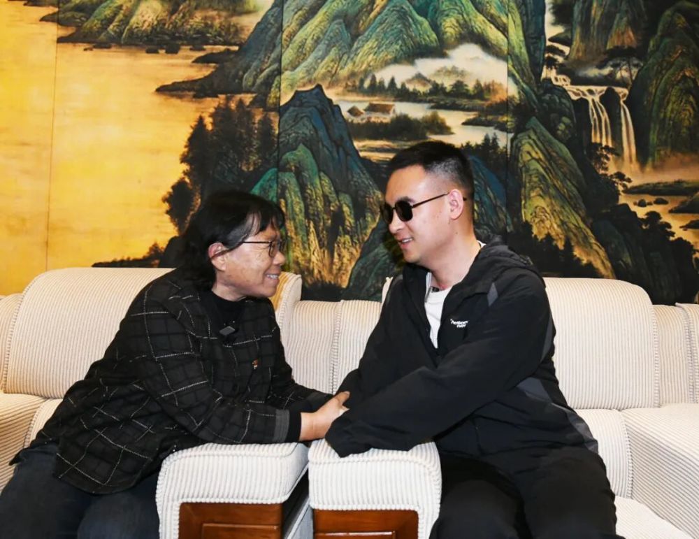 11月16日,“七一奖章”获得者张桂梅与“八一奖章”获得者杜富国在华坪见面交谈。(丽江融媒记者 钱磊 摄)