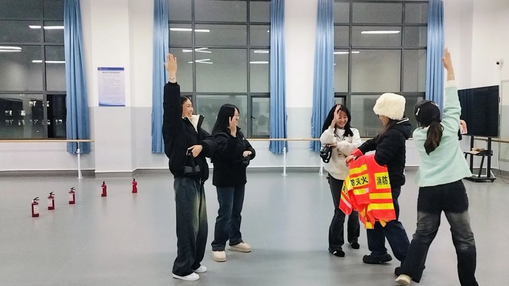 排练场上,丽江文化旅游学院教育学院的学生祖欣怡正调试着“火患热力图”演示装置,红色区域直观展示着古城消防隐患分布。她说:“把专业知识转化为守护安全的力量,让人成就感满满。”同院系学生何俊娴在剧中饰演“阿勒邱”,为了准确传递文化传承的使命感,她反复练习东巴文“火”字的书写,力求让每一笔都承载着先民的防火智慧。