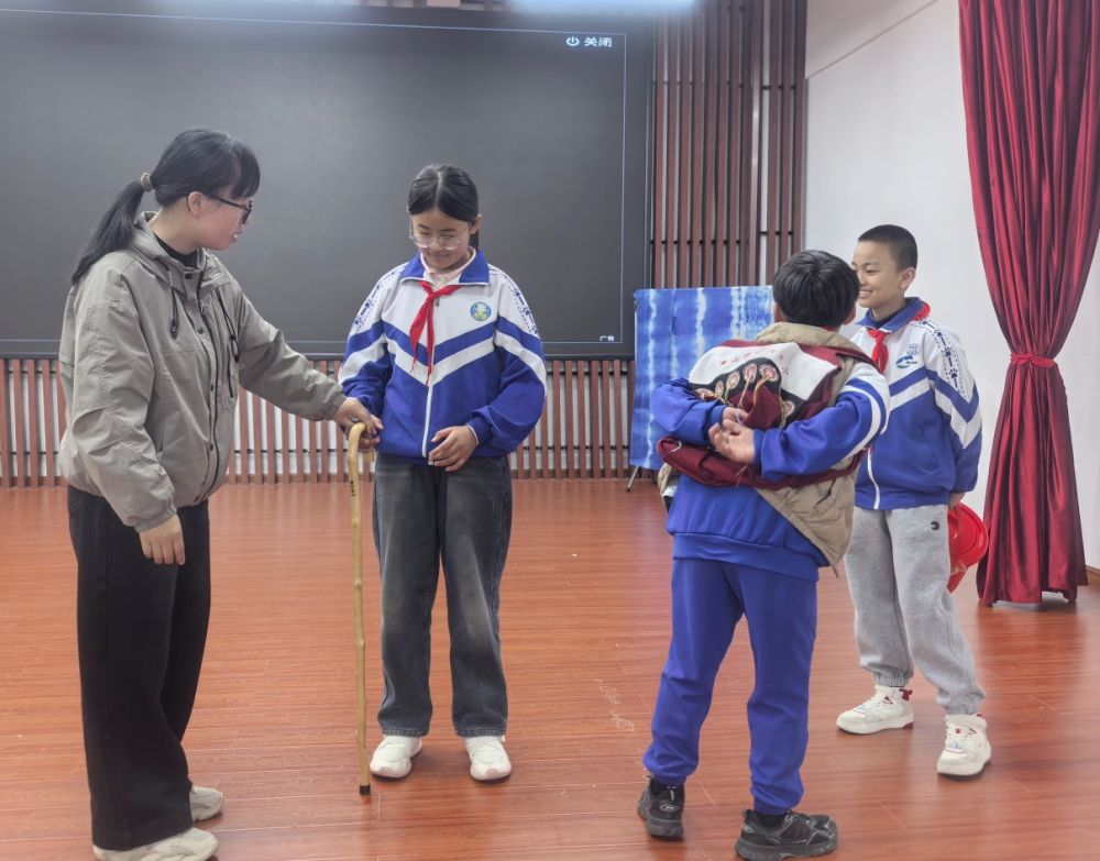 玉龙县黄山白马小学教师在指导学生排练课本剧《青石板承千年韵 法治千钧护山河》。(丽江融媒记者 侯玮 摄)