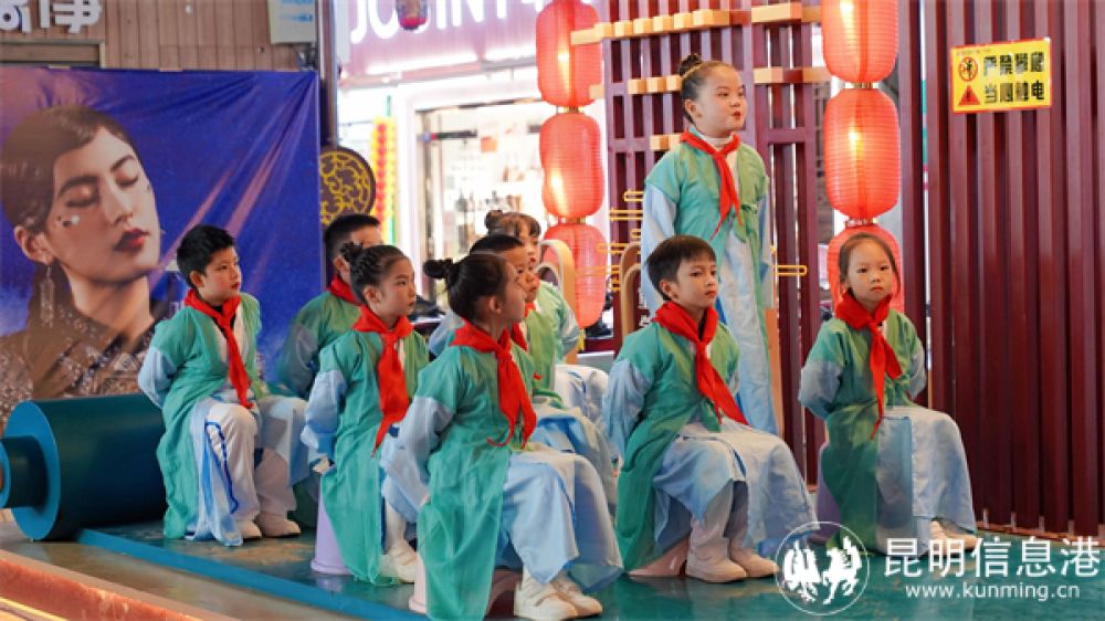 在土司衙署复建区域,一位古装先生正带领小学生朗诵《三字经》,重现古代私塾授课场景。不远处,文笔塔下古筝弹奏声声入耳,文学与韵律在此完美结合。