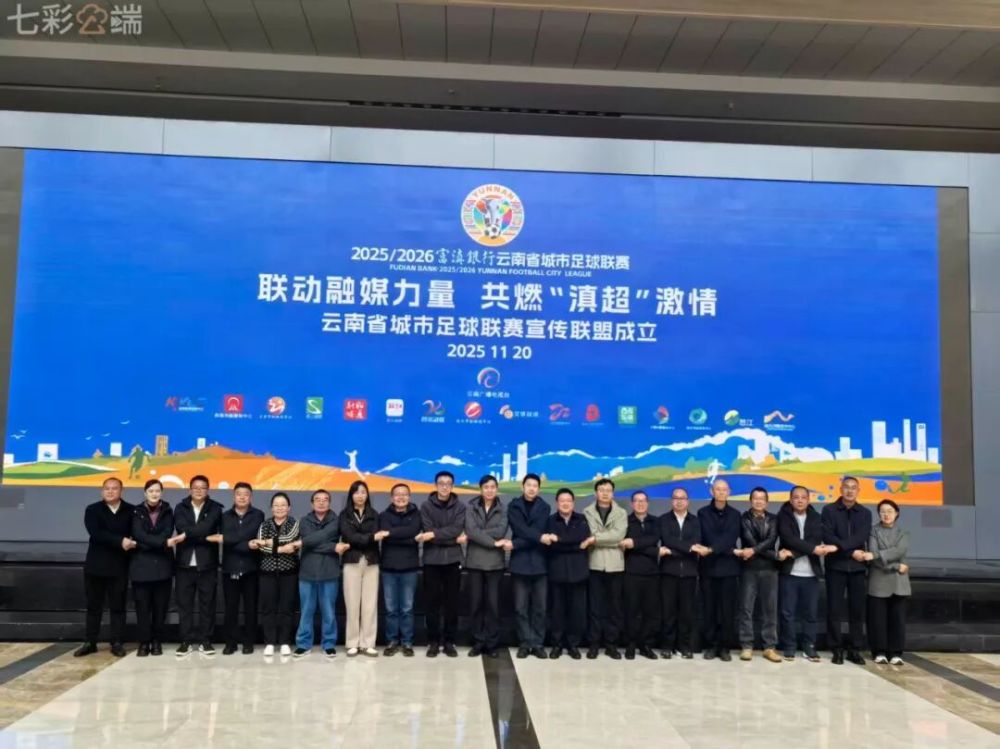 11月20日上午,云南省广播电视台与全省16个州(市)融媒体中心在昆明正式成立“2025/2026富滇银行云南省城市足球联赛”宣传联盟,共同吹响“滇超联赛”全域宣传集结号!
