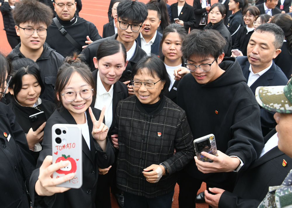 大家和张桂梅老师合影留念。(丽江融媒记者 赵庆祖 摄)