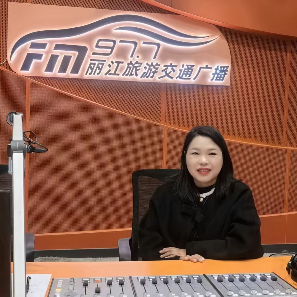 11月25日,古城区司法局束河司法所所长和万娟做客FM97.7直播间。(丽江融媒记者 梁国宏 摄)