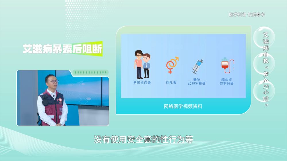 无保护性行为(未使用安全套);安全套破裂或滑落;与健康状况不明的伴侣发生关系;遭遇性侵害;共用针具吸毒。