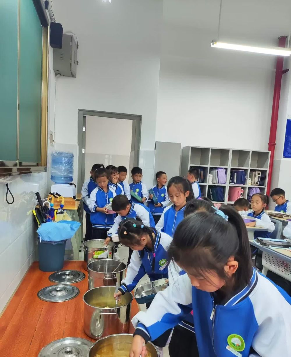 据文笔学校教务室主任李玲介绍,在日常管控中,学校建立起覆盖粮食、水电、文具的多维体系。针对校园浪费痛点,学校推行“按需取餐、少量多次”分餐制,精准统计就餐人数优化采购;水电管理通过张贴提示、班委巡查及更换感应设备等措施进行节约管控;文具方面设“共享文具角”,开展旧物改造活动。如今,校园浪费现象得到遏制,“光盘”行动成为师生的自觉行为,厨余垃圾量大幅下降,水电消耗同比减少,节约习惯内化为师生日常言行。