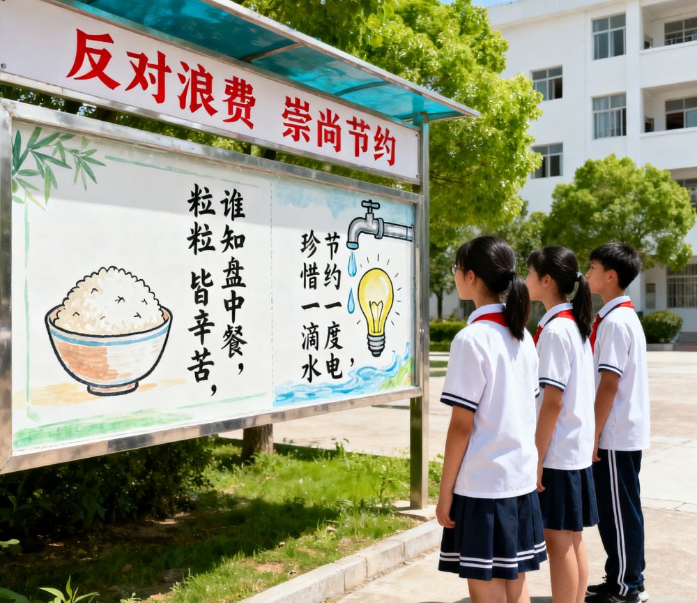 学校构建“氛围浸润+课程渗透+实践赋能”体系,全方位传递节约理念。校园内,节约主题标语随处可见,学生原创手抄报贴满展板,广播常态化播报勤俭故事与节约妙招;课堂上,班会课通过粮食生产纪录片、浪费案例剖析,让学生深知资源来之不易,“节约与文明”主题讨论明晰价值导向;实践层面,“光盘行动”“节约小达人”评选、旧物改造等活动有序开展,学生走进农田体验农事,推动节约理念延伸至家庭与社会。