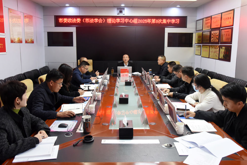 11月25日,市委政法委(市法学会)理论学习中心组举行2025年第8次集中学习,深入学习领会党的二十届四中全会精神,研究部署贯彻落实具体举措。