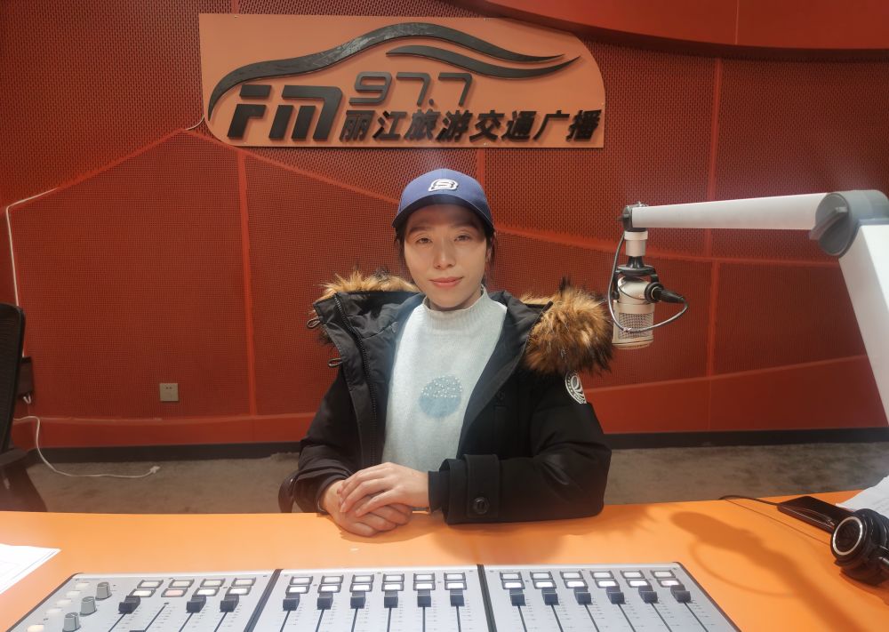 11月26日下午,美鲁纳西村景区游客中心解说员李华丽做客丽江旅游交通广播。(丽江融媒记者 李婧 摄 )