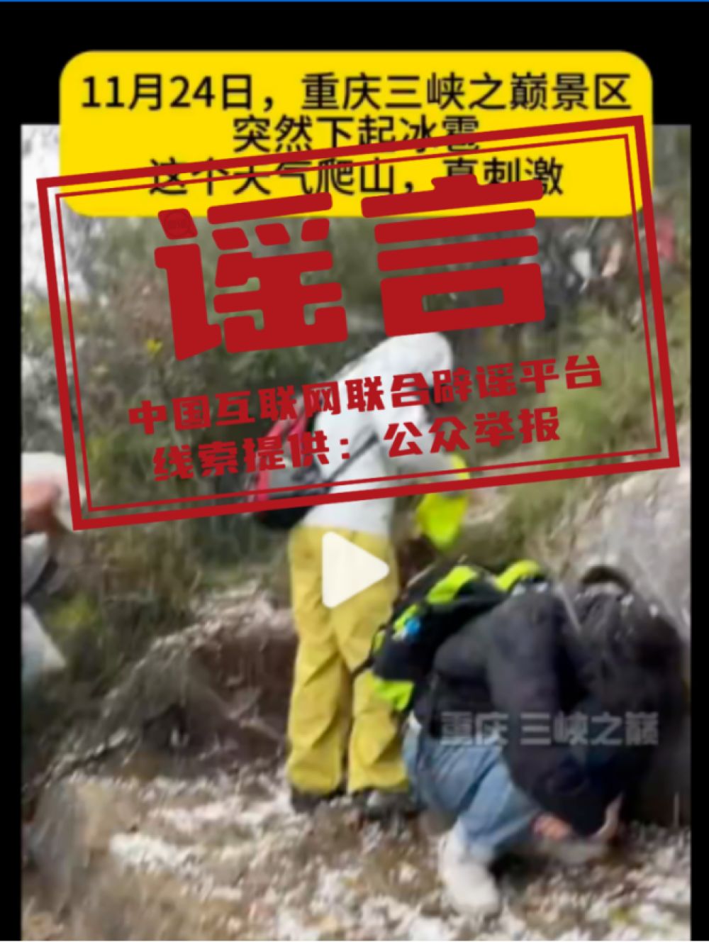 谣言:重庆三峡之巅突降“冰雹”?
