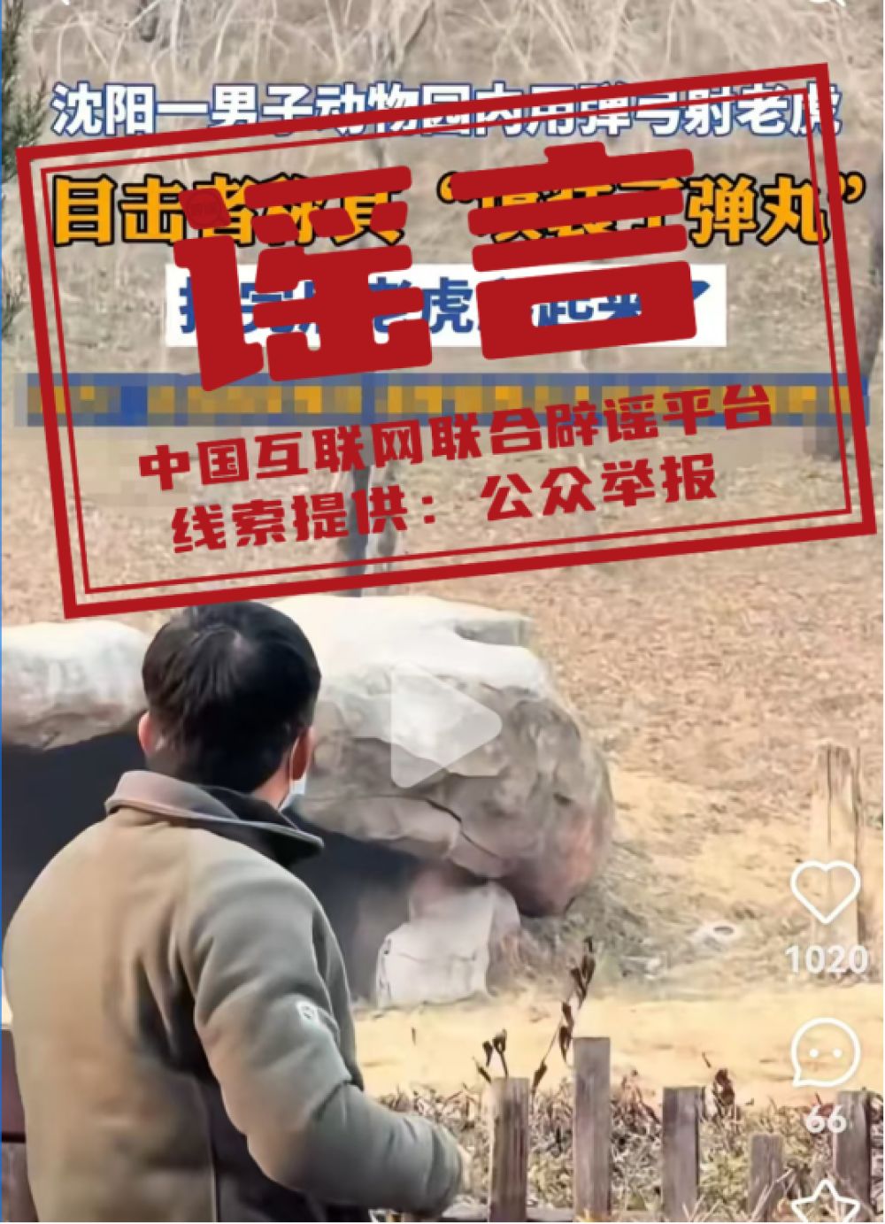 谣言:沈阳森林动物园一男子用弹弓射老虎?