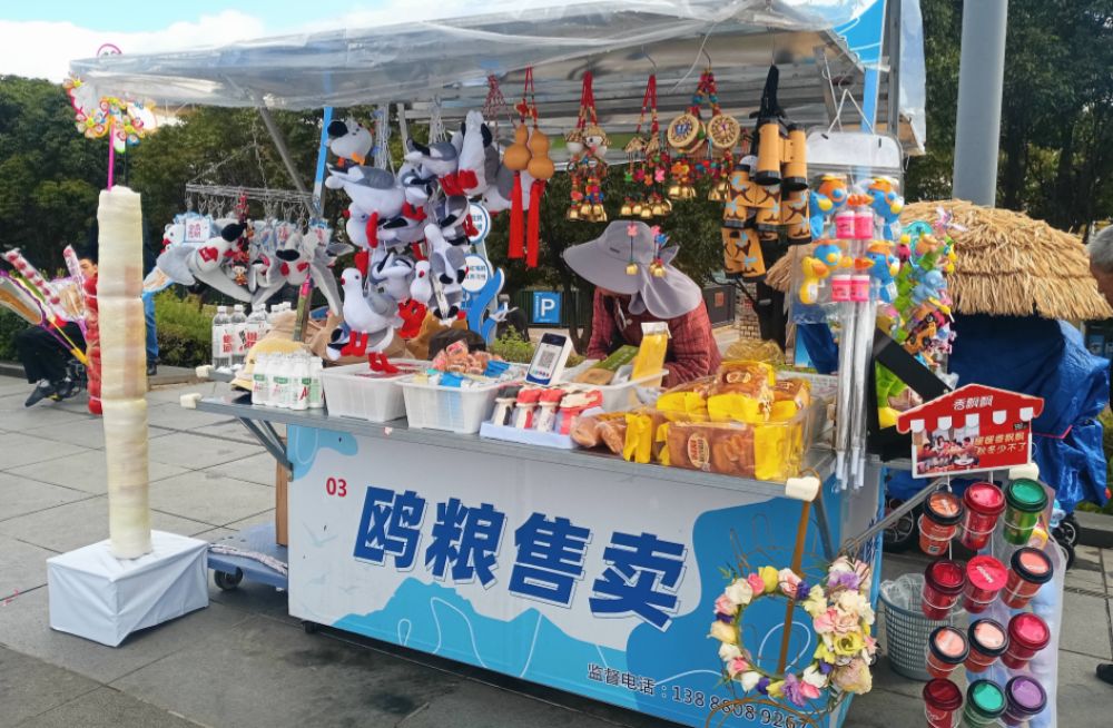 鸥粮售卖点销售着各种与红嘴鸥有关的商品